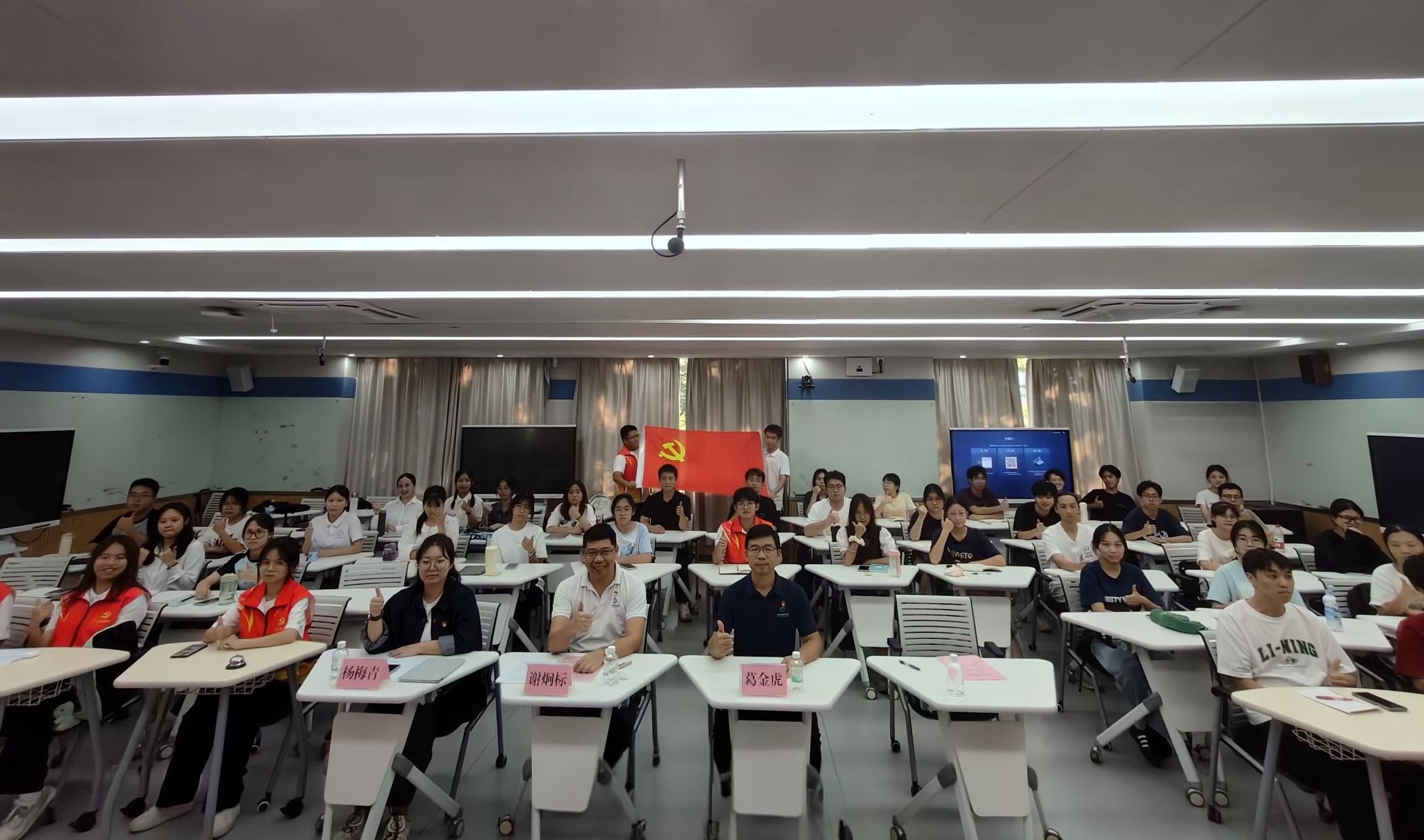 党委书记谢炯标,党委副书记葛金虎,辅导员杨梅青、刘文渊,学生党员及2024年下半年入党积极分子参加本次活动。