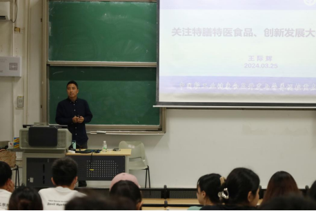 3月25日下午,王际辉以“关注特膳特医食品 创新发展大健康产业”为题,对2022级舞蹈编导1班、2022级食品质量与安全1班、2022级食品科学与工程1班全体同学授课。他以当今世界复杂的健康问题和健康需求为切入点,阐述我国不同时期的健康理念,进一步向同学们说明未来大健康产业发展趋势及其必要性。同时,他结合粤港澳大湾区健康产业的发展脉络,详细介绍了功能产品和特膳食品的发展历程和主要特点,借助丰富的研究案例深入浅出地描绘了特膳食品创新发展的蓝图,并指出未来健康产业面临的重大挑战。他期望同学们保持敏锐的洞察力和危机意识,鼓励大家深入社会实践,培养发现问题、解决问题的能力,不断提升个人综合素质,承担起共建健康中国的责任与使命。