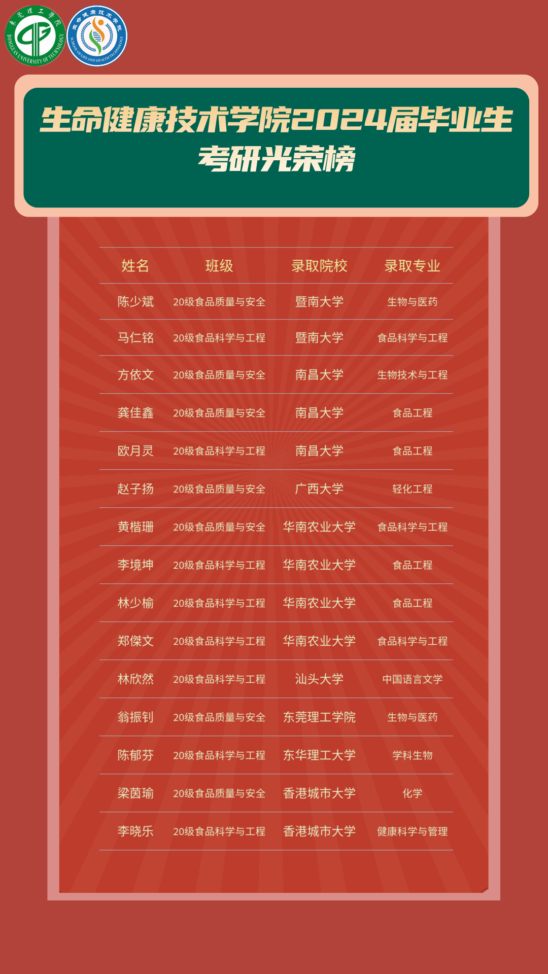 近日,吃瓜网站 2024届毕业生考研升学捷报频传,15名同学通过努力实现了一战成“硕”的梦想,其中,有多名同学被暨南大学、南昌大学、华南农业大学等高水平大学录取。据统计,吃瓜网站 2024届毕业生升学率达23.44%。