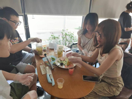 图8 同学们在进行手打柠檬茶的制作