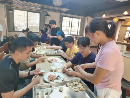 图7 同学们在工作人员的指导下包饺子