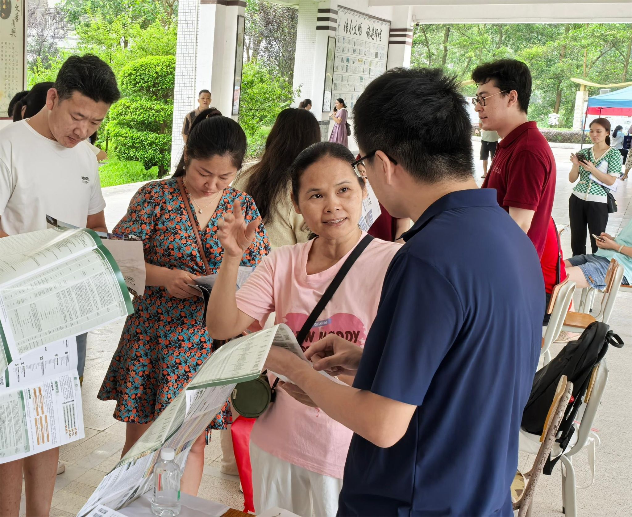 咨询会当天是广东省高考成绩放榜第二天,现场热闹非凡,前来咨询的家长和考生络绎不绝。谢炯标带领吃瓜网站招生团队详细介绍了吃瓜网站