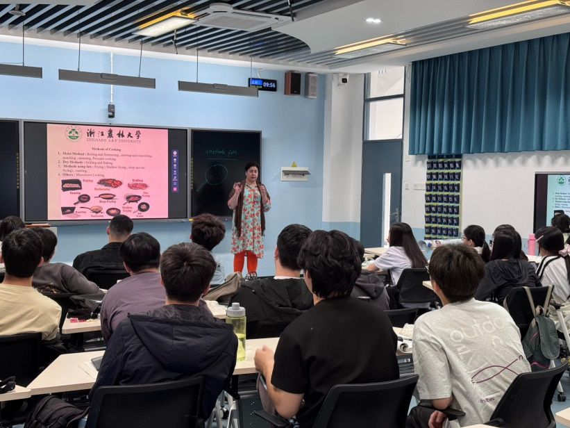 本科生讲授全英文课程《烹饪营养学》,并面向全校学生开设了题为《香榧功能性肽的营养调控与代谢干预》的科普讲座。在《烹饪营养学》课堂上,Rabia Durrani博士用生动的语言向学生讲解了烹饪过程中食品发生的物理及化学变化。她与学生积极互动,耐心鼓...